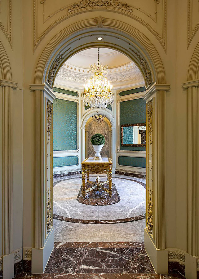 This spectacular estate was designed to evoke the elegance and appeal of a classic French Château. At 14,000 square feet with expansive interior and exterior entertaining spaces, Château V realizes the Owners’ dreams of comfortably entertaining 300 guests as easily as entertaining 30 and showcasing their impressive collection of French period antiques.