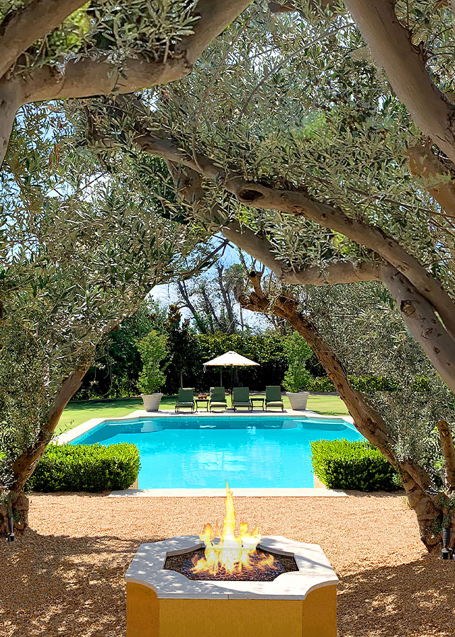 Subsequent additions to the property have added to these outdoor area with a Pizza Oven Pavilion, covered Trellis Dining space, Bocce Court, Fire-pit, Olive Grove